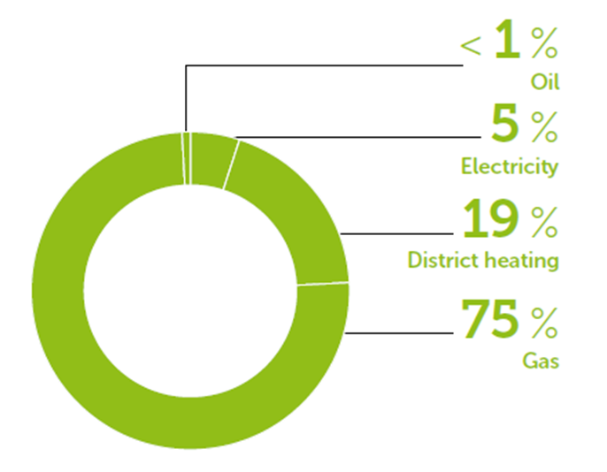 Der Ersatz oder die Renovierung von Heizsystemen, der Übergang zur Fernwärme, und die Substitution von CO2-intensiven Energiequellen durch erneuerbare Energien bleiben zentrale Elemente unserer Dekarbonisierungsstrategie.